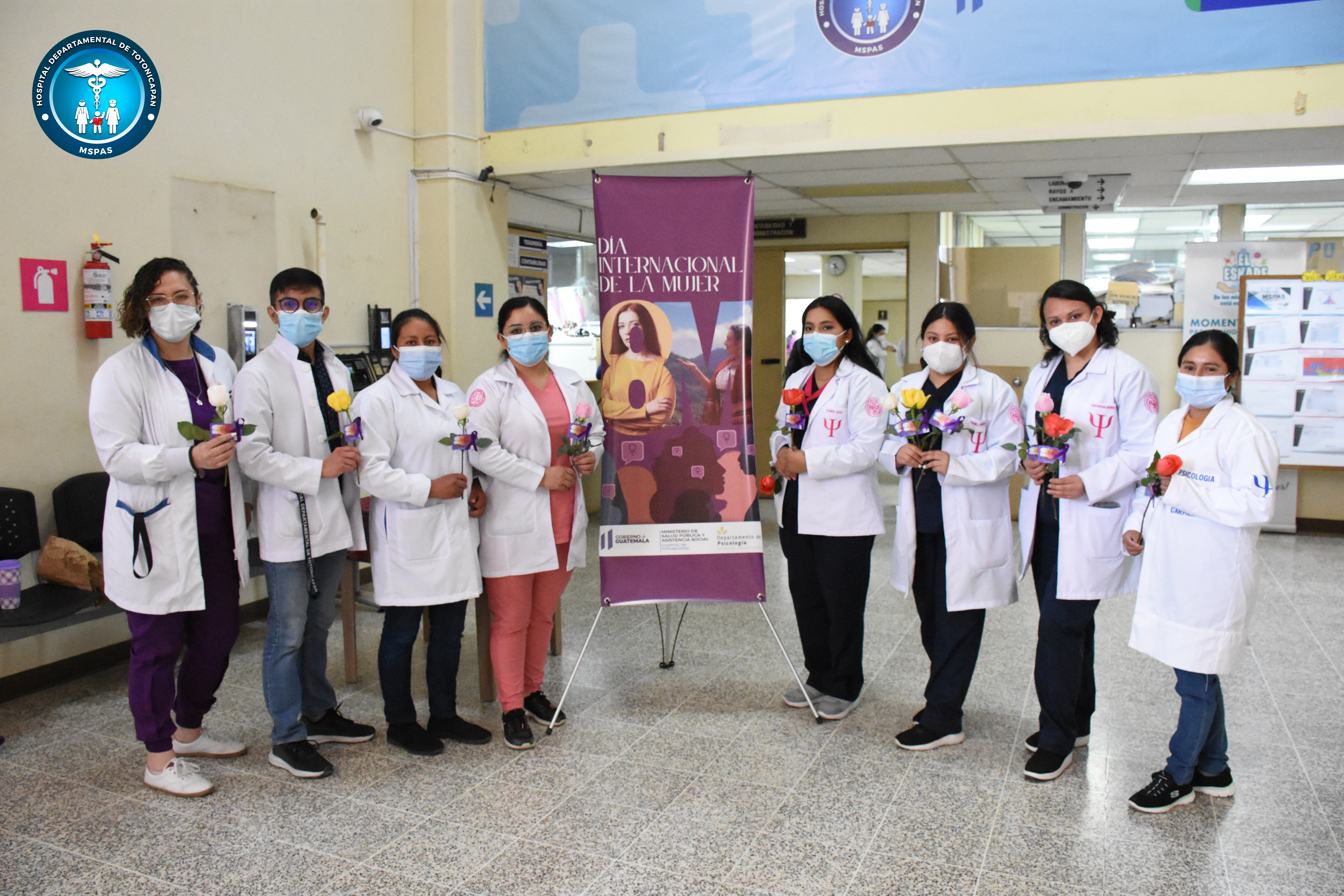 Hoy 8 de marzo se conmemora el Día Internacional de la Mujer, el personal del Departamento de Psicología del Hospital Departamental de Totonicapán entregó rosas a las mujeres que laboran en este nosocomio.