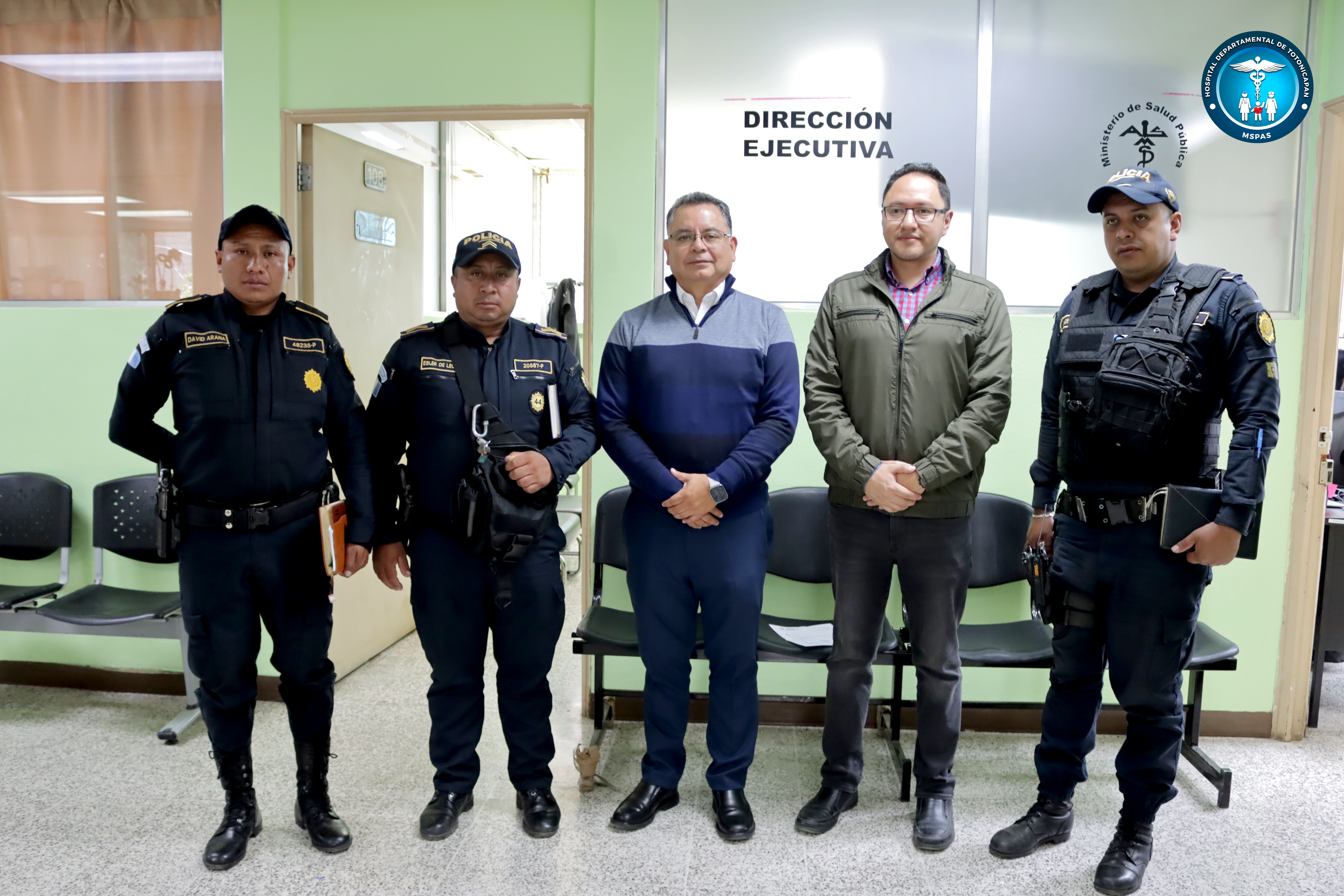 Con el compromiso de garantizar un entorno seguro y protegido para los pacientes, visitantes y personal, luego de varias mesas de trabajo interinstitucionales entre agentes de la Policía Nacional Civil y autoridades del Hospital Departamental de Totonicapán, se habilitó un espacio adecuado para los elementos de PNC que resguardan el nosocomio.